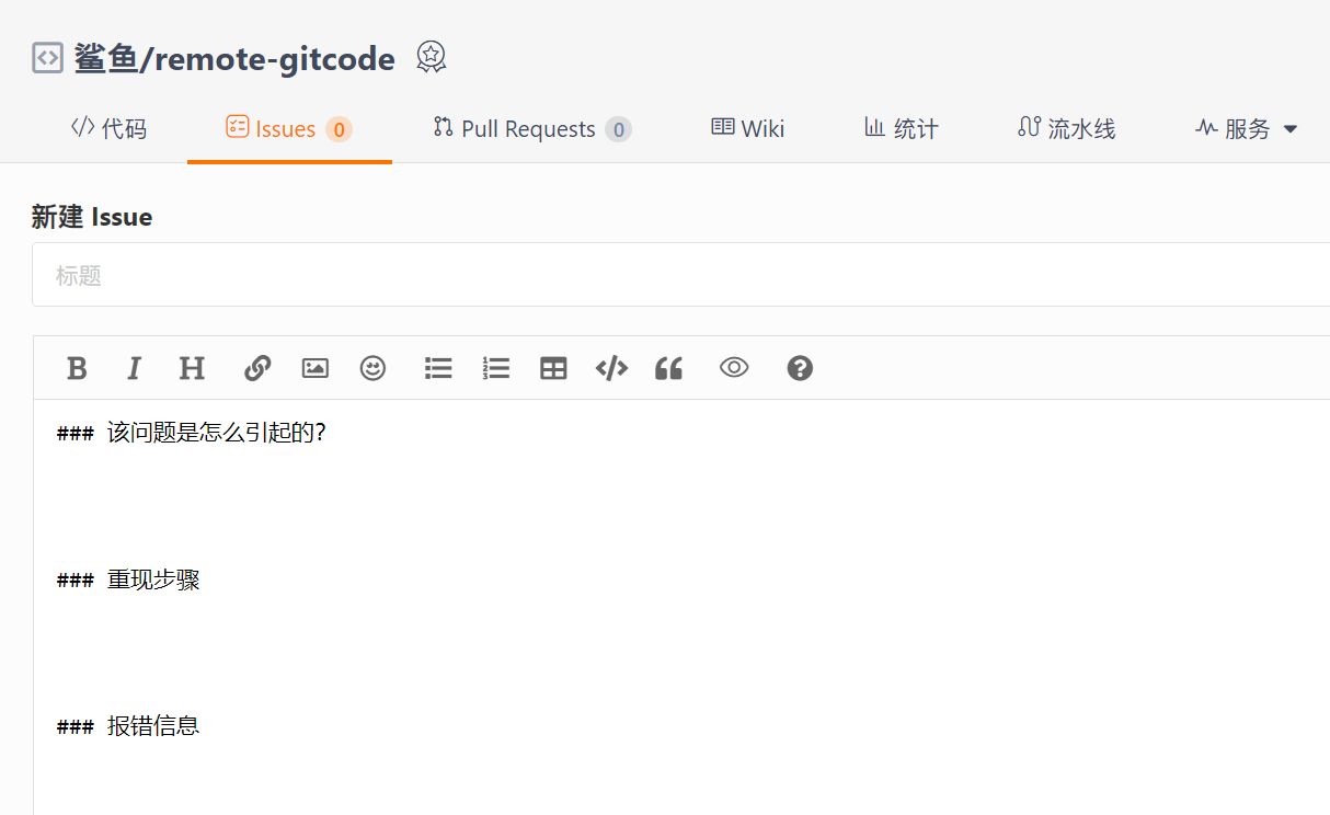 简单来说,这个界面是团队用来 **“提问题、管需求、追 Bug”** 的协作入口,通过结构化的 Issue 提交和跟进,能让项目的问题管理更有序、高效。