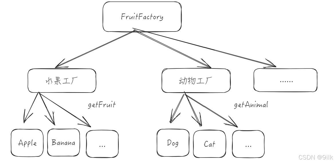 public:virtual std::shared_ptr<Fruit> getFruit(const string& fruit){if(fruit == "苹果") return make_shared<Apple>();else return make_shared<Banana>();}virtual std::shared_ptr<Animal> getAnimal(const string& animal){return shared_ptr<Animal();>}