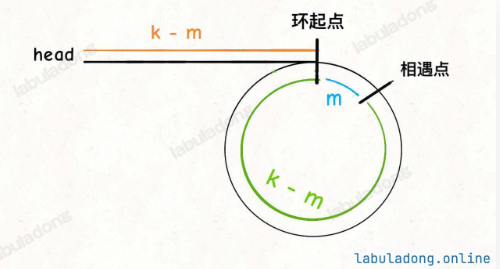 ,即表头到环起点的距离 = 相遇点到环起点的距离(绕环k-1