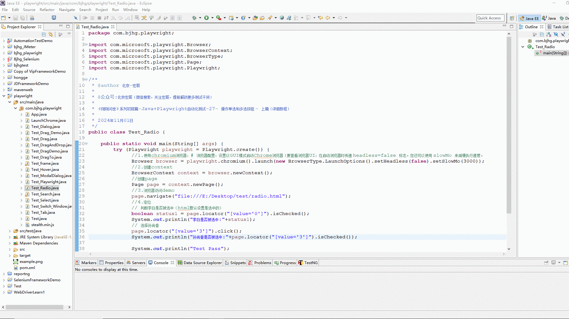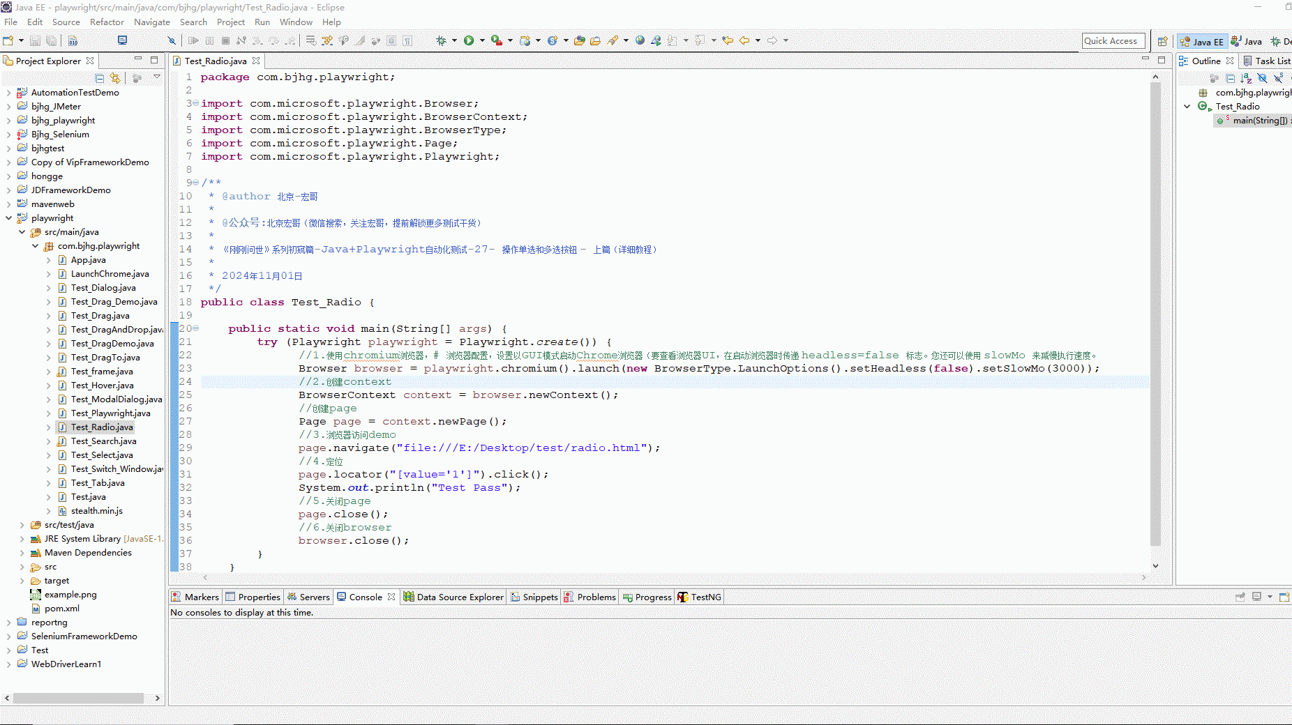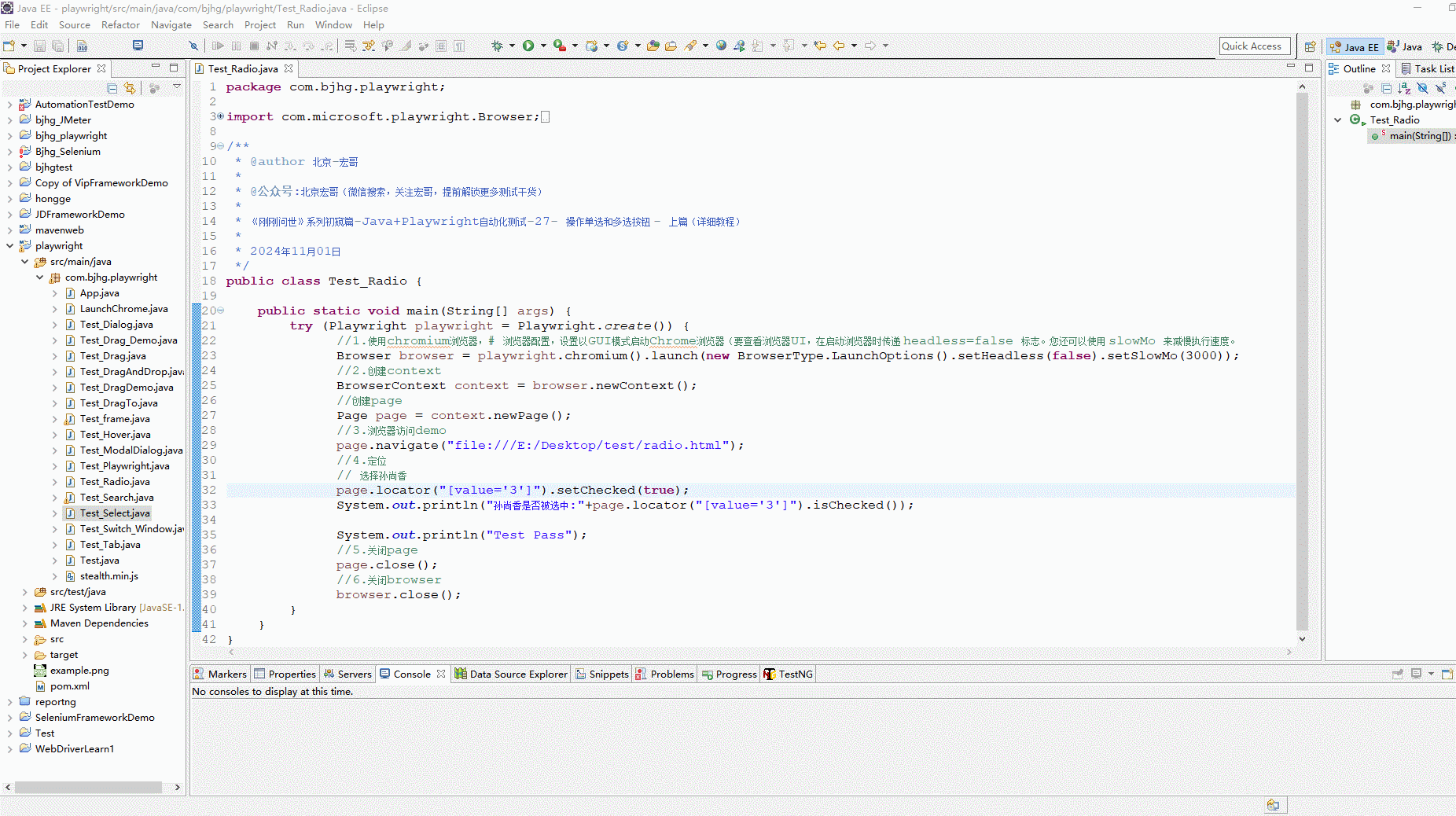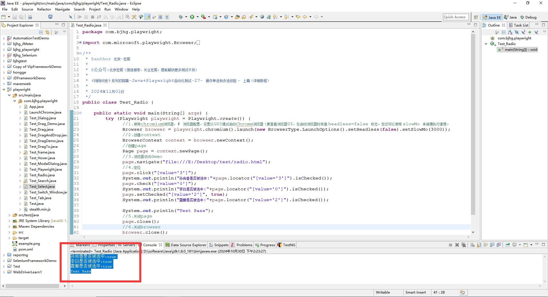 import com.microsoft.playwright.Playwright;/*** @author 北京-宏哥* * @公众号:北京宏哥(微信搜索,关注宏哥,提前解锁更多测试干货)* * 《刚刚问世》系列初窥篇-Java+Playwright自动化测试-27- 操作单选和多选按钮 - 上篇(详细教程)** 2025年10月22日*/