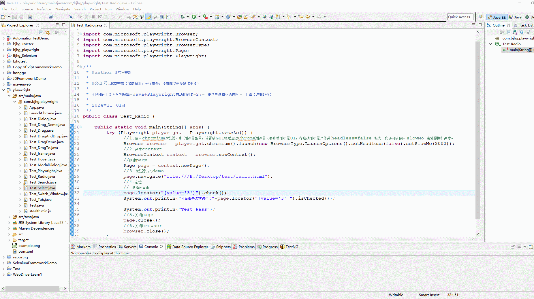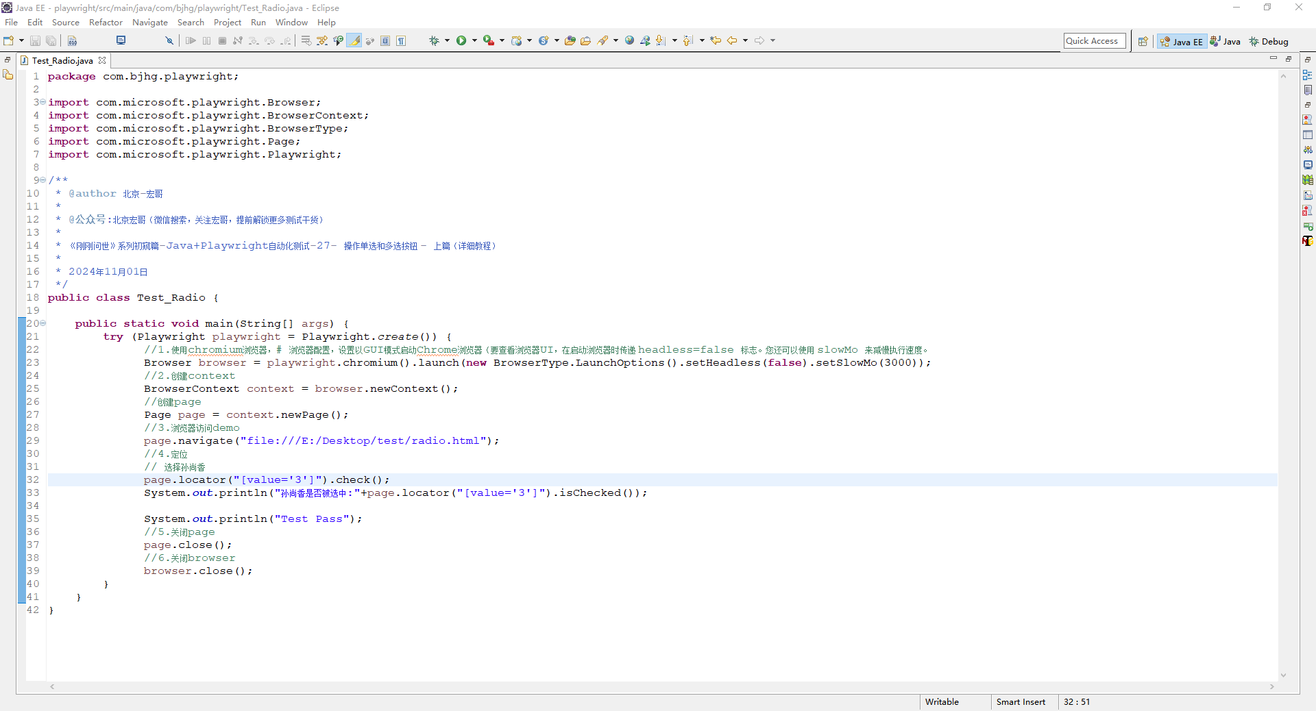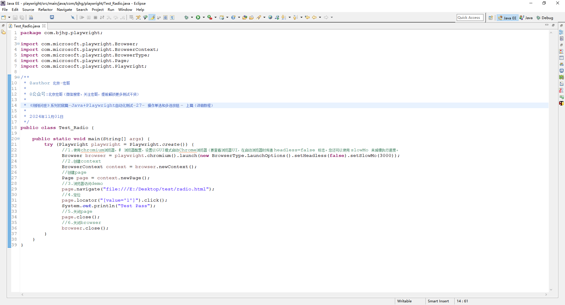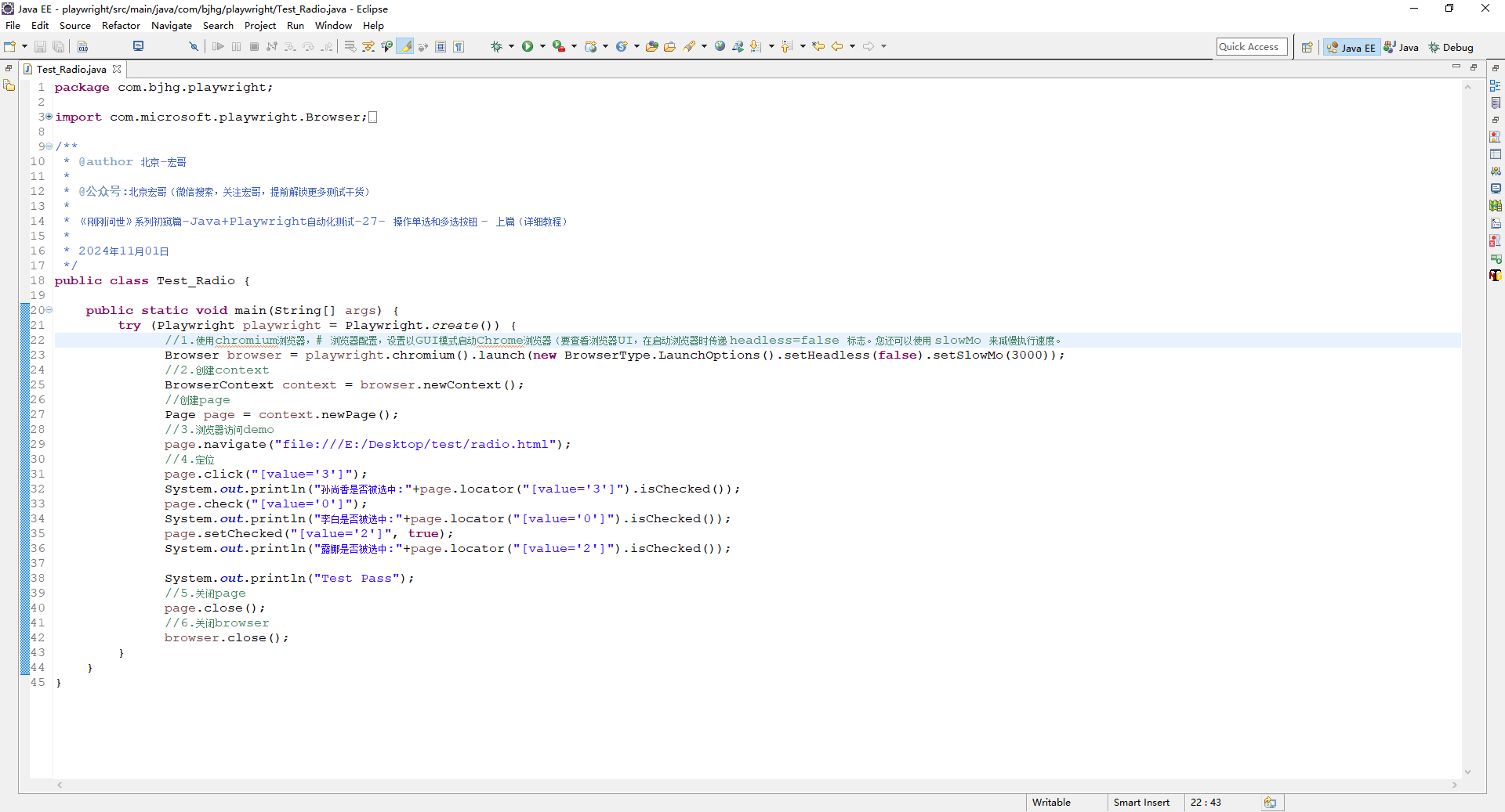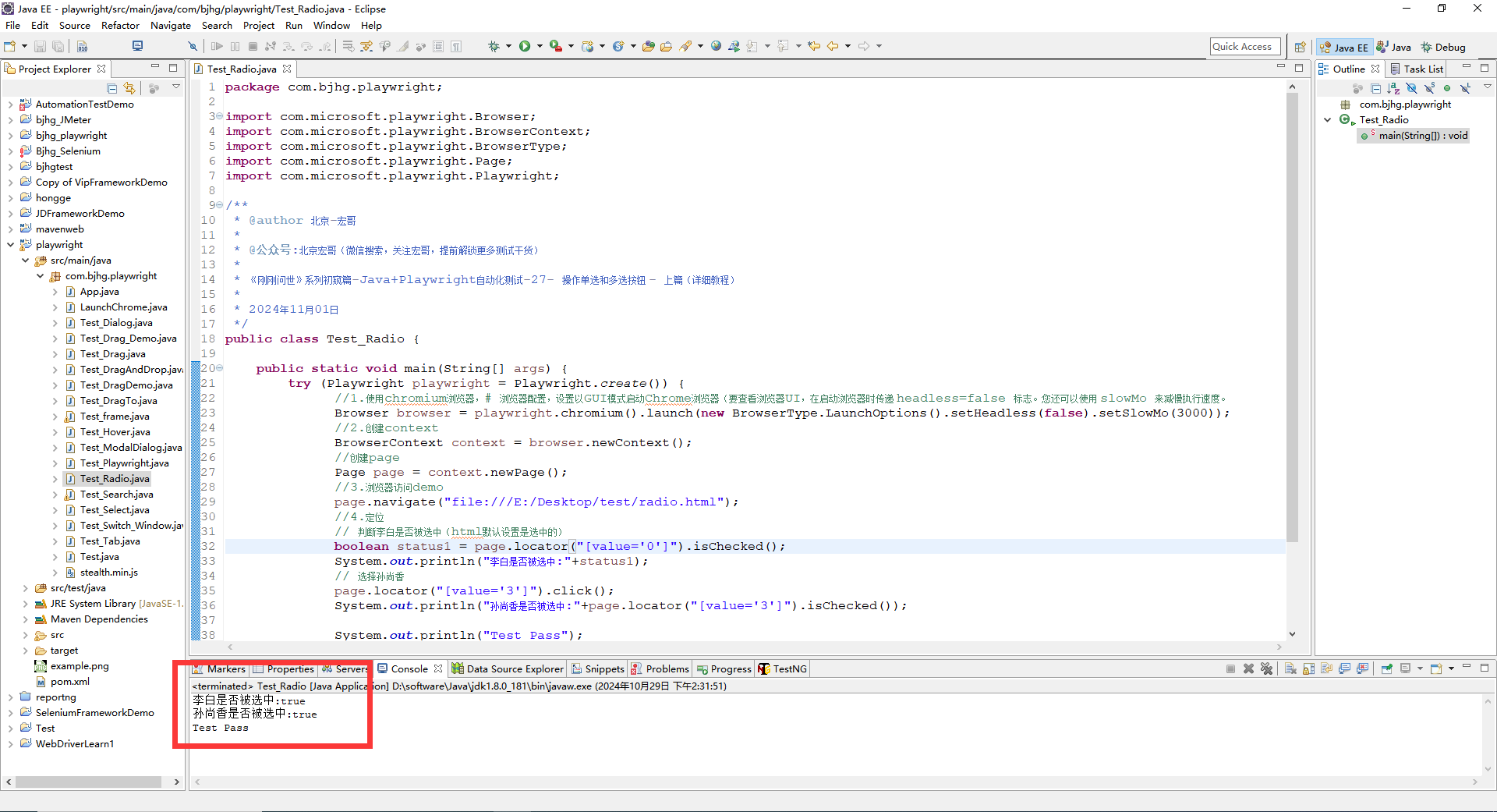 import com.microsoft.playwright.Playwright;/*** @author 北京-宏哥* * @公众号:北京宏哥(微信搜索,关注宏哥,提前解锁更多测试干货)* * 《刚刚问世》系列初窥篇-Java+Playwright自动化测试-27- 操作单选和多选按钮 - 上篇(详细教程)** 2025年10月22日*/