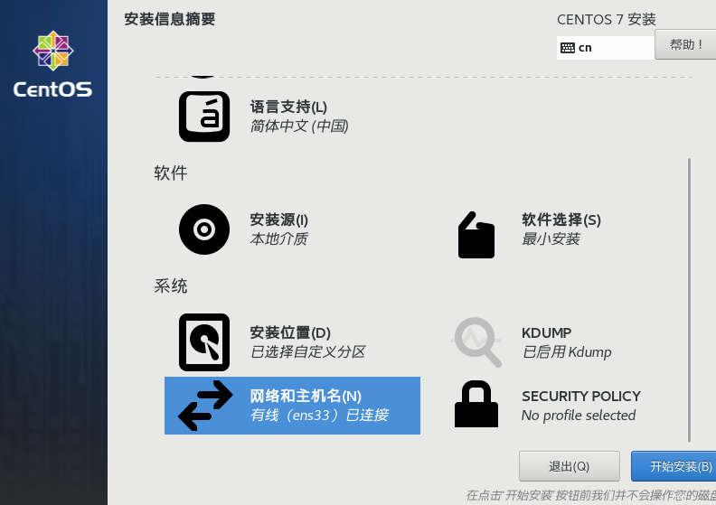 - 当所有必选项配置完成后,“开始安装(Begin Installation)” 按钮将变为可用状态。