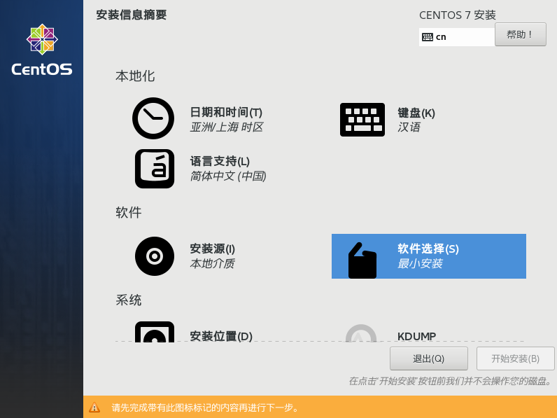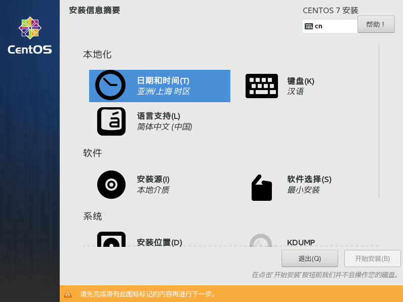 进入“Installation Summary”(安装概览)界面,需依次配置以下关键项: