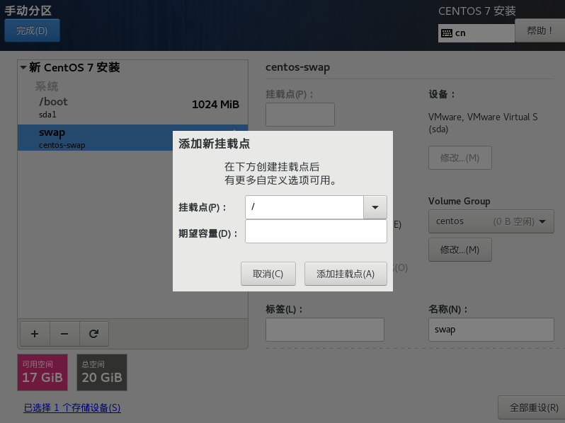 swap | 4096 | swap | 交换分区,建议为内存的 1-2 倍 |