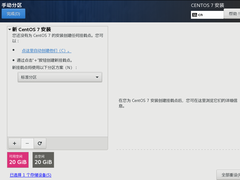 / | (留空) | xfs 或 ext4 | 根分区,使用剩余所有空间 |