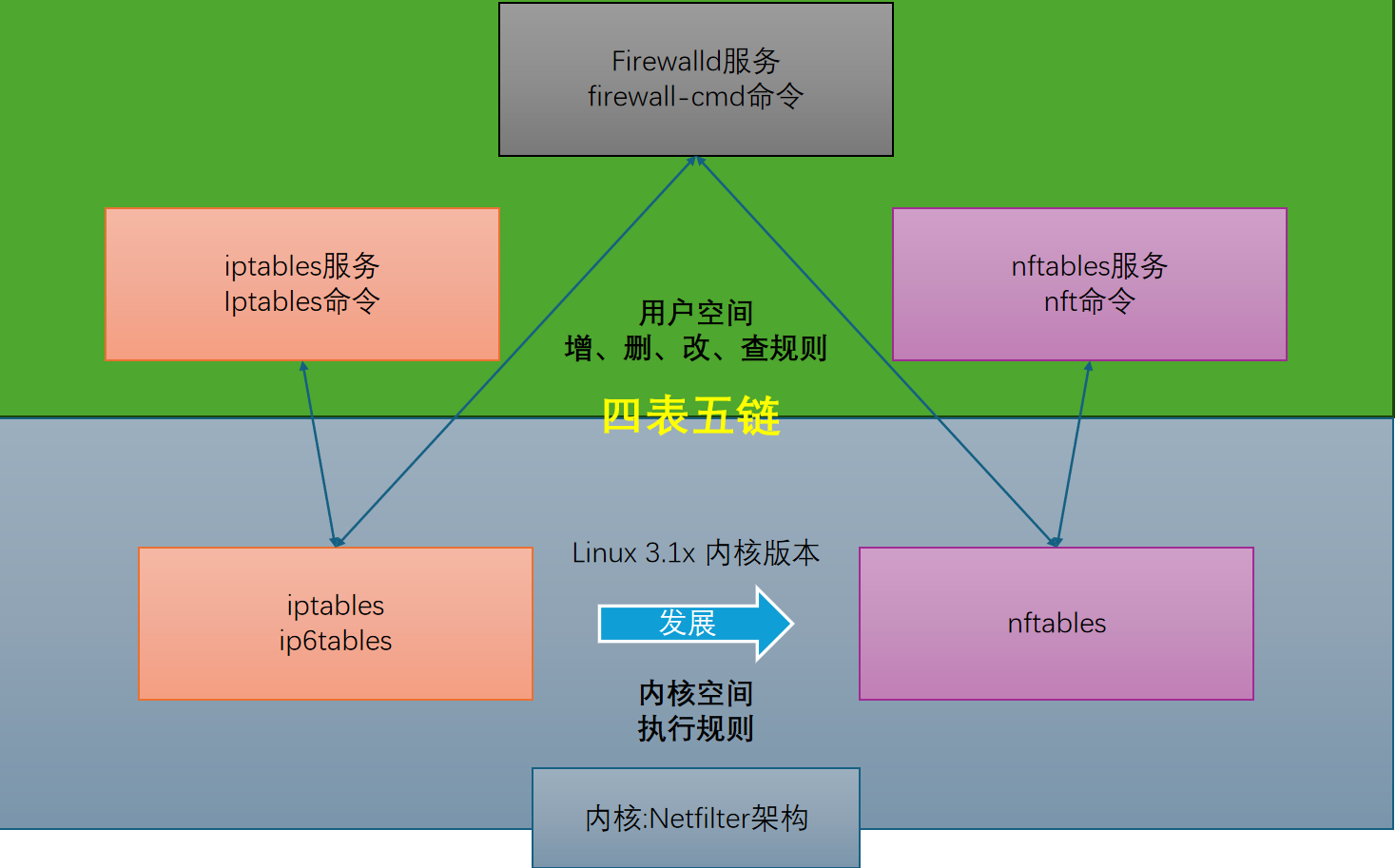- 统一框架:将 iptables 的多个表(filter、nat 等)名称弱化处理,转成了表类型