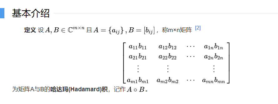 哈达玛积是两个矩阵(或向量)按元素相乘(element-wise multiplication)的结果。