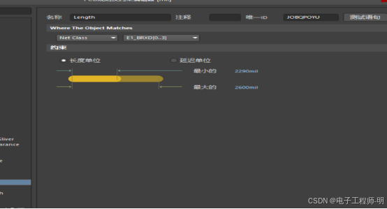 不直接提供一个硬性的"最大长度"字段来设定统一上限。它主要确保一组网络长度在指定的容差范围内匹配,并常以组内最长的网络为参考。如果你需要为这组网络设定一个绝对的最大长度,你可能需要结合使用 Length规则(在 High Speed 规则类别下)来设定一个上限。