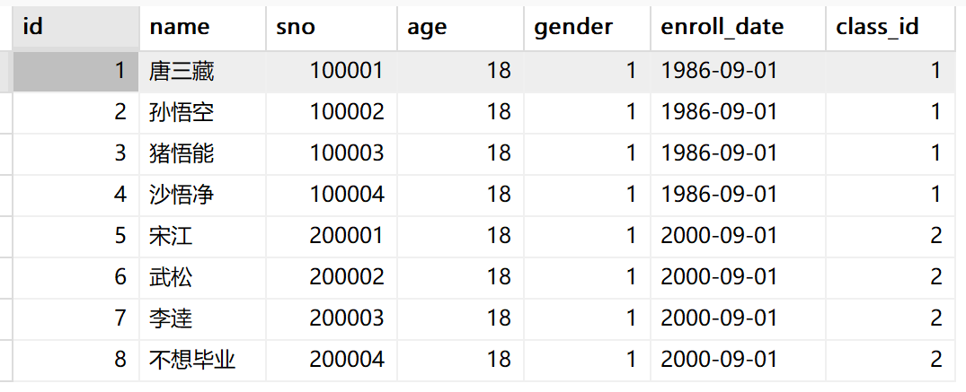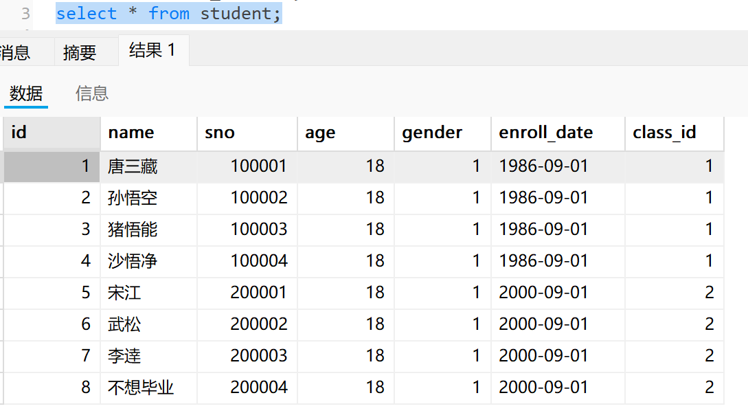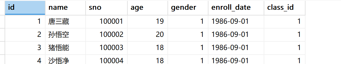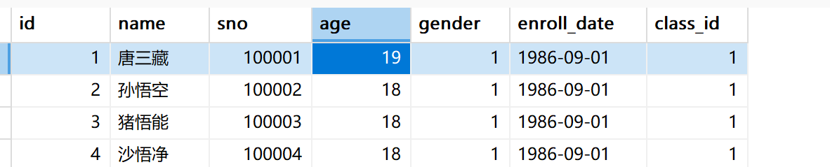 查询列表中的是要查的数据的名字查询语句中的列名要和其一一对应-------可理解为列名的别名