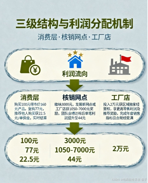 在商业模式层面,该体系具有明显的 “自购省钱、推广赚钱”特征。