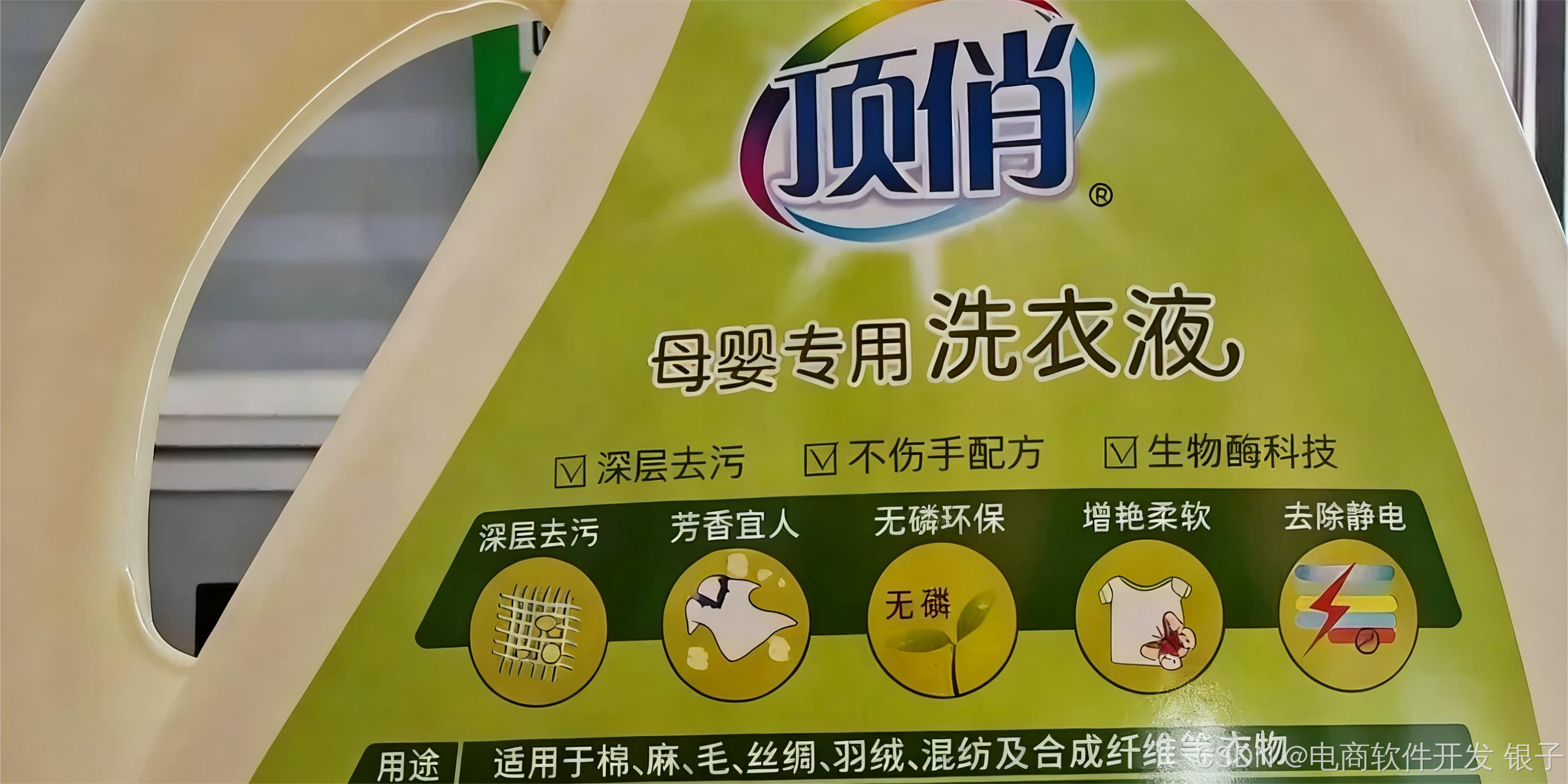顶俏选择以“低价+基础功能”切入市场,其产品线覆盖洗衣液、果蔬清洗剂等日常洗护品类,强调成分中未添加荧光剂、磷等物质。