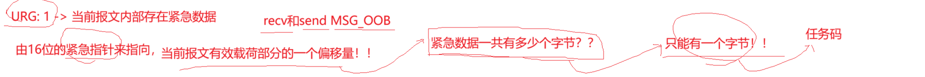 URG代表内部有紧急数据,紧急指针有偏移量,紧急数据只能有1个字节,所以我们就可以通过这两个搭配实现我们的插队。