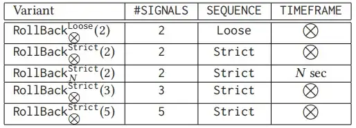 在分析过程中(详见第 4 节),我们根据上述特性,衍生出了五种不同的 RollBack 攻击变体。这些变体的特性组合如下表 1 所示。