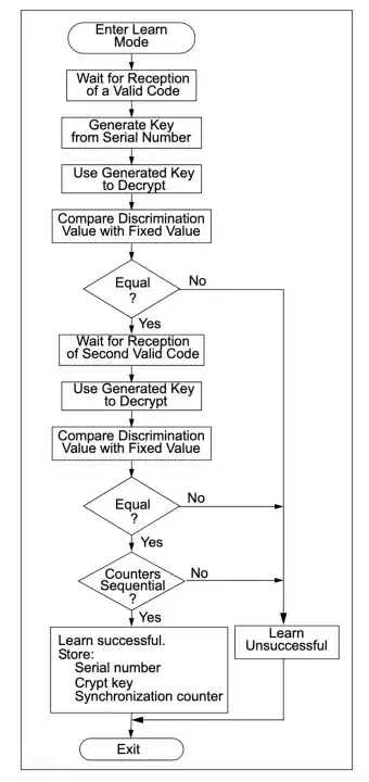 图4、KeeLoq HCS200/HCS300 远程无钥匙进入系统中的典型配对流程