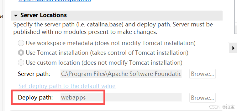 将下方的Deploy path的值改为你的Tomcat安装目录下的webapps