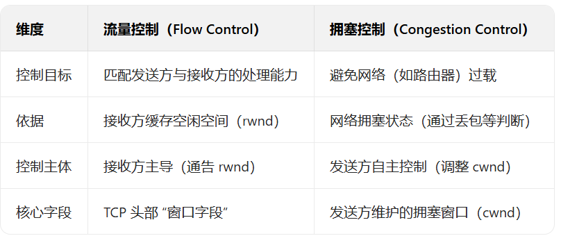 TCP 流量控制是为了防止发送方发送数据的速度过快,导致接收方因缓存区不足而无法处理,核心是基于接收方的缓存区的状态动态控制发送方的发送窗口