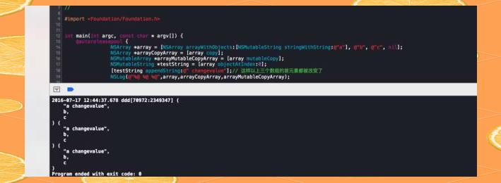 我们发现,即使在多次执行copy操作时,容器对象仍会生成新的对象,这是因为必须避免影响原始内容。