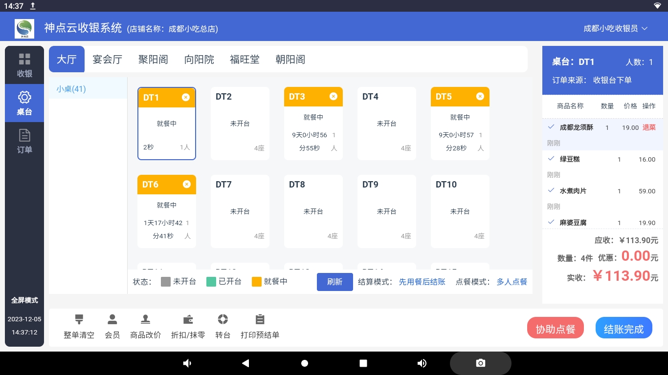 桌台管理:实时显示桌台状态,开台、转台操作便捷