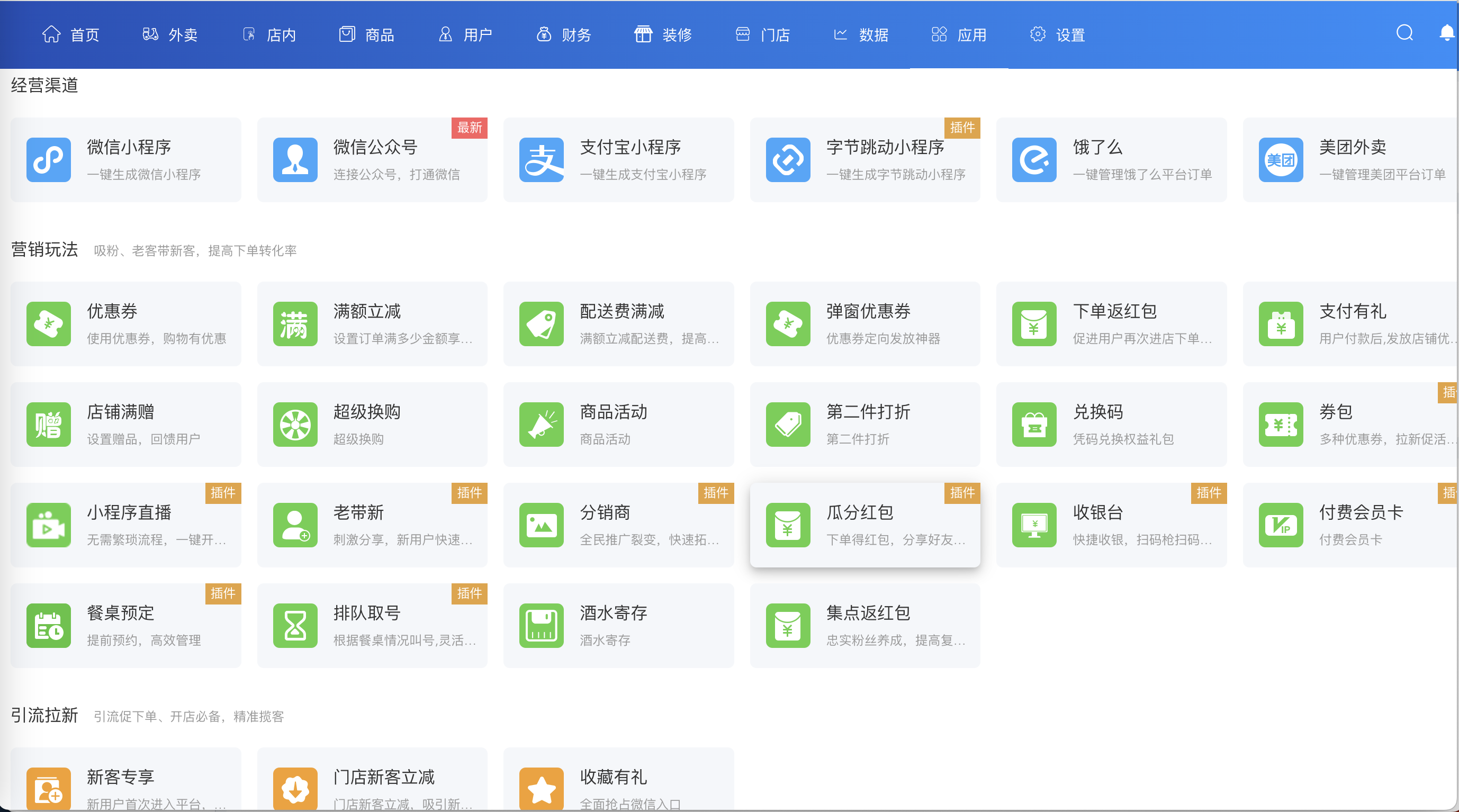 经营渠道管理:微信小程序、支付宝小程序、字节跳动小程序、微信公众号一键生成