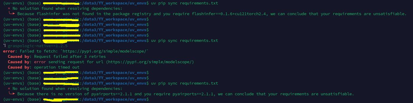 如果出现下述错误,无法安装某个包,那么就需要从 requirements_uv.txt 文件中删除