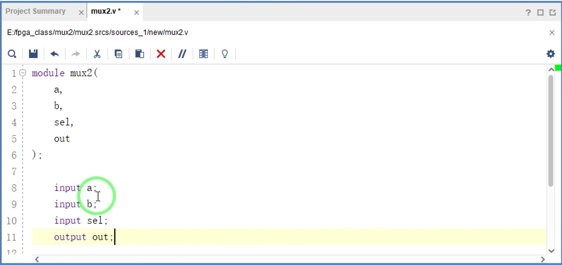 注意:verilog代码中所有的字母区分大小写,且所有字符均需使用英文字符