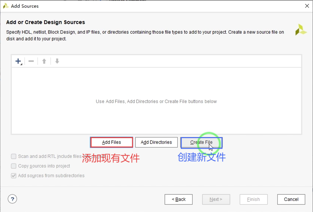 勾选第一个选项表示不需要添加已有的设计源文件、源代码。