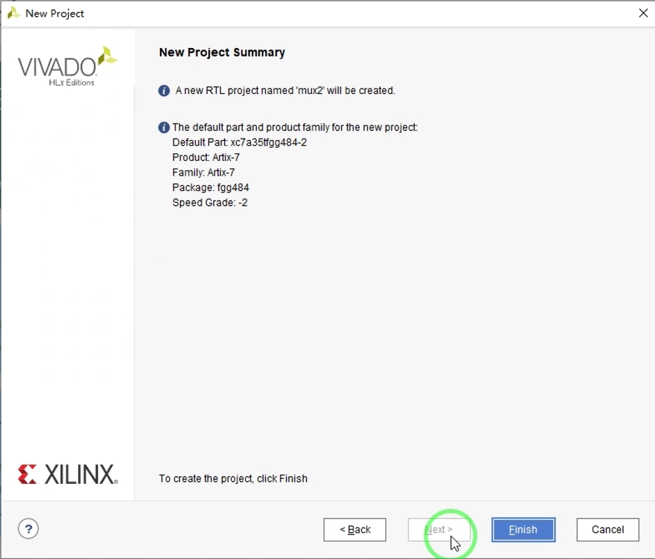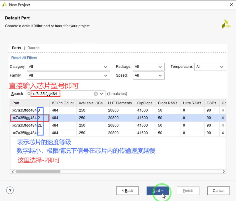 根据购买的开发板选择对应的芯片型号(此处选择xc7a35tfgg484)