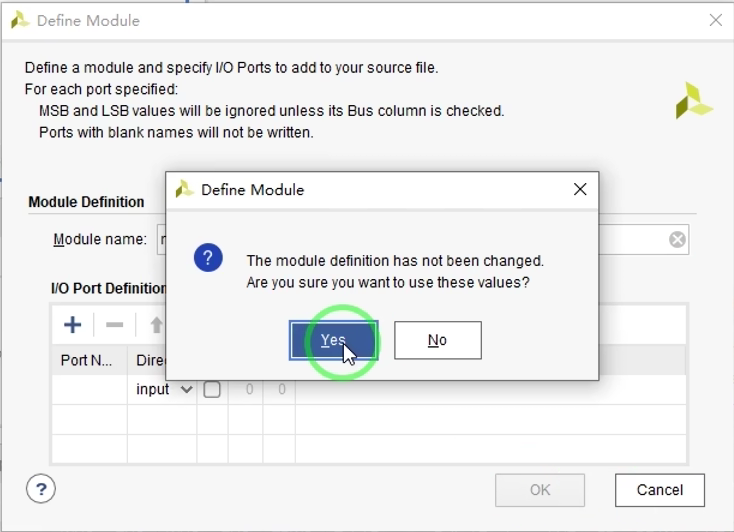 这里需要输入设计的端口信息,但是不常用,直接点击OK→Yes即可。