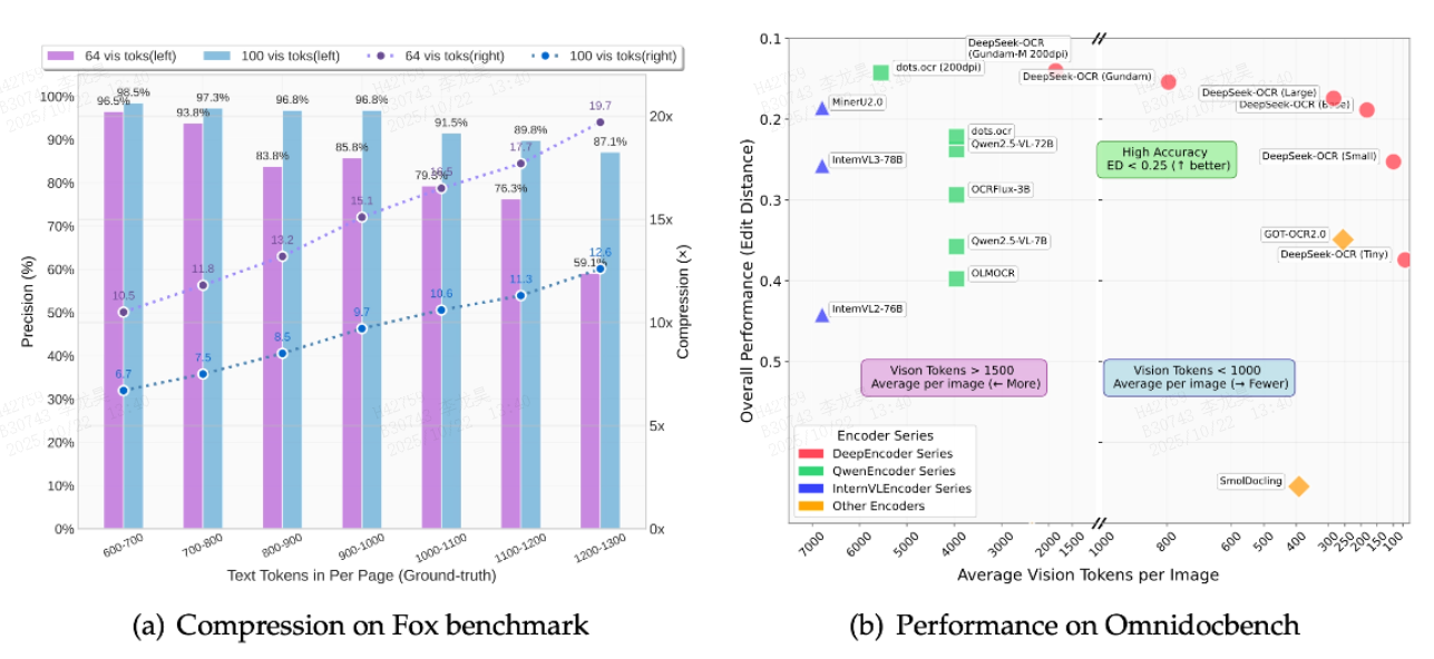 - 视觉文本压缩:将长文本内容通过视觉模态进行高效压缩,实现7-20倍的压缩比。