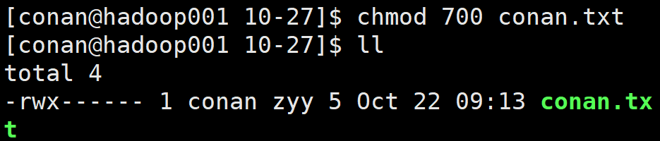 去掉所属组和其他人的权限,给拥有者加上所有权限,八进制修改