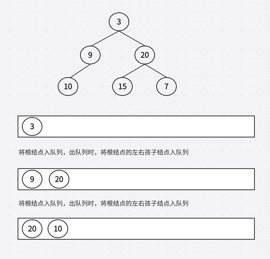 1. 若根结点不为空,则将 root 结点入队列,此时当前层只有一个数据,即 levelSize = 1