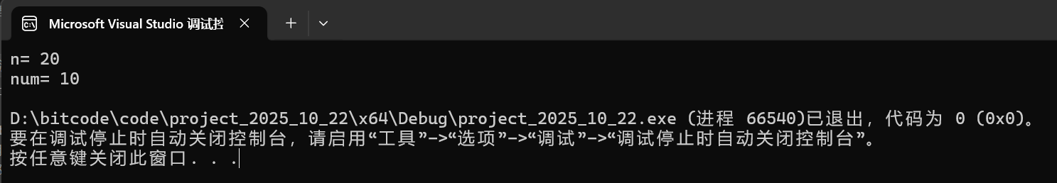 {int num = 10;int n = num<<1;printf("n= %d\n", n);printf("num= %d\n", num);return 0;
