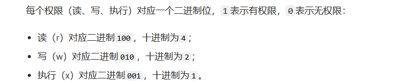 分别是3个二进制位,从高位到低位分别代表rwx
