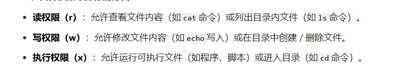 文件权限有读写执行,r代表读,w代表写,x代表执行