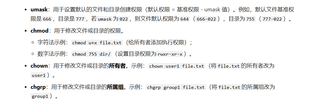 chmod修改文件或目录的权限。