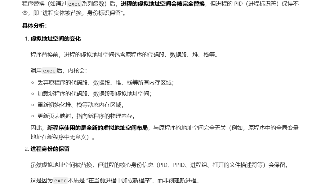 除了fork还有一个vfork,它的创建目的是为了快速创建子进程并执行exec函数,进行替换,所以OS不会为它创建新的虚拟地址空间。程序替换后会有全新的虚拟地址空间,但是还是属于原来父进程的子进程。