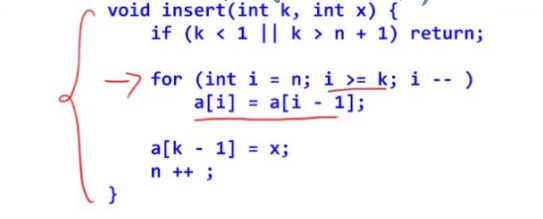 - 把第 i 个位置及后面的元素 “往后挪一位”(比如在位置 3 插元素,要把原位置 3、4、5 的元素都往后移,从最后一个元素开始挪,避免覆盖)。