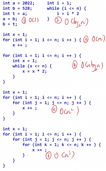 - 算法特性:有穷性、确定性、可行性、输入(≥0)、输出(≥1)。