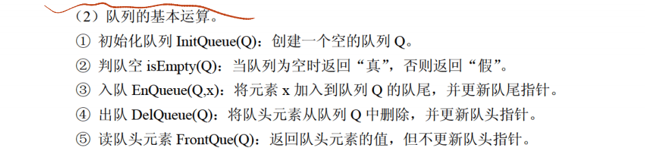 - 定义:限定只在 “表尾” 插入、“表头” 删除的线性表(表尾叫 “队尾”,表头叫 “队首”)。
