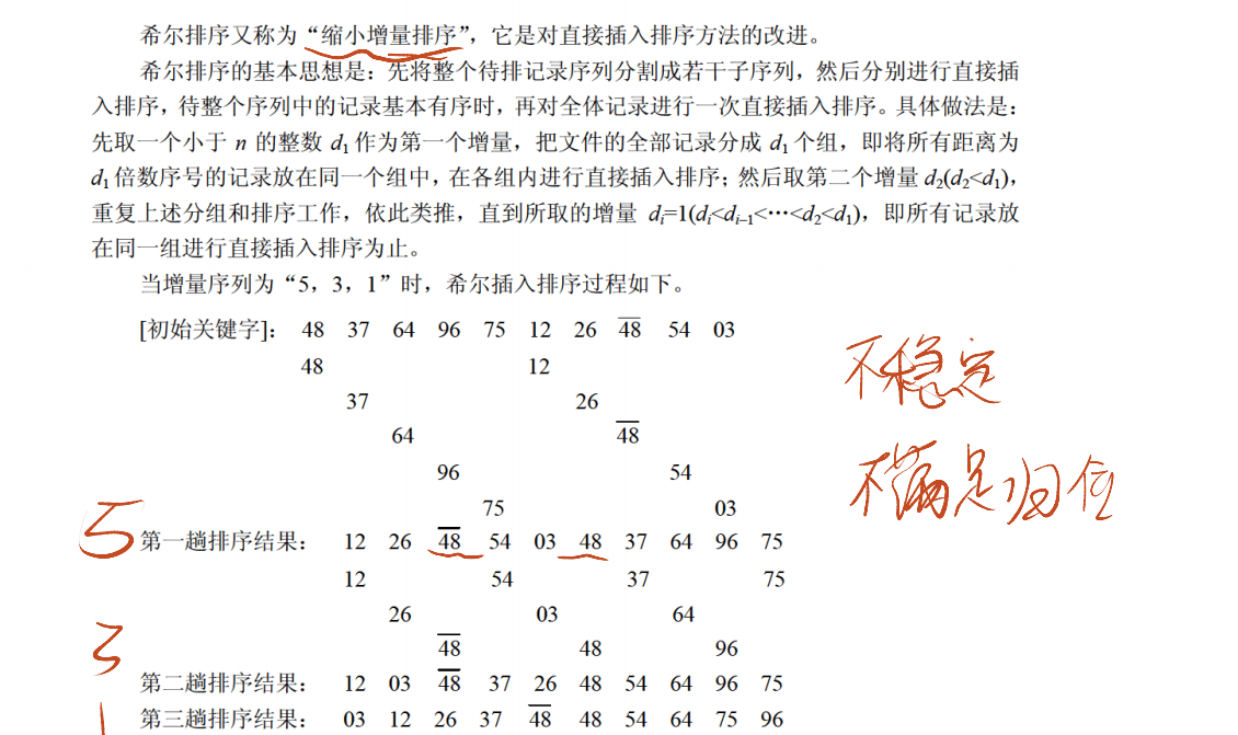 - 增量序列选择不当(考试默认用 “gap=length/2→1”,不用深究其他序列)。