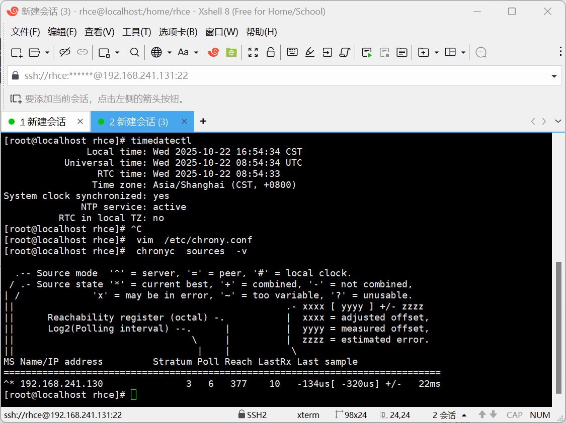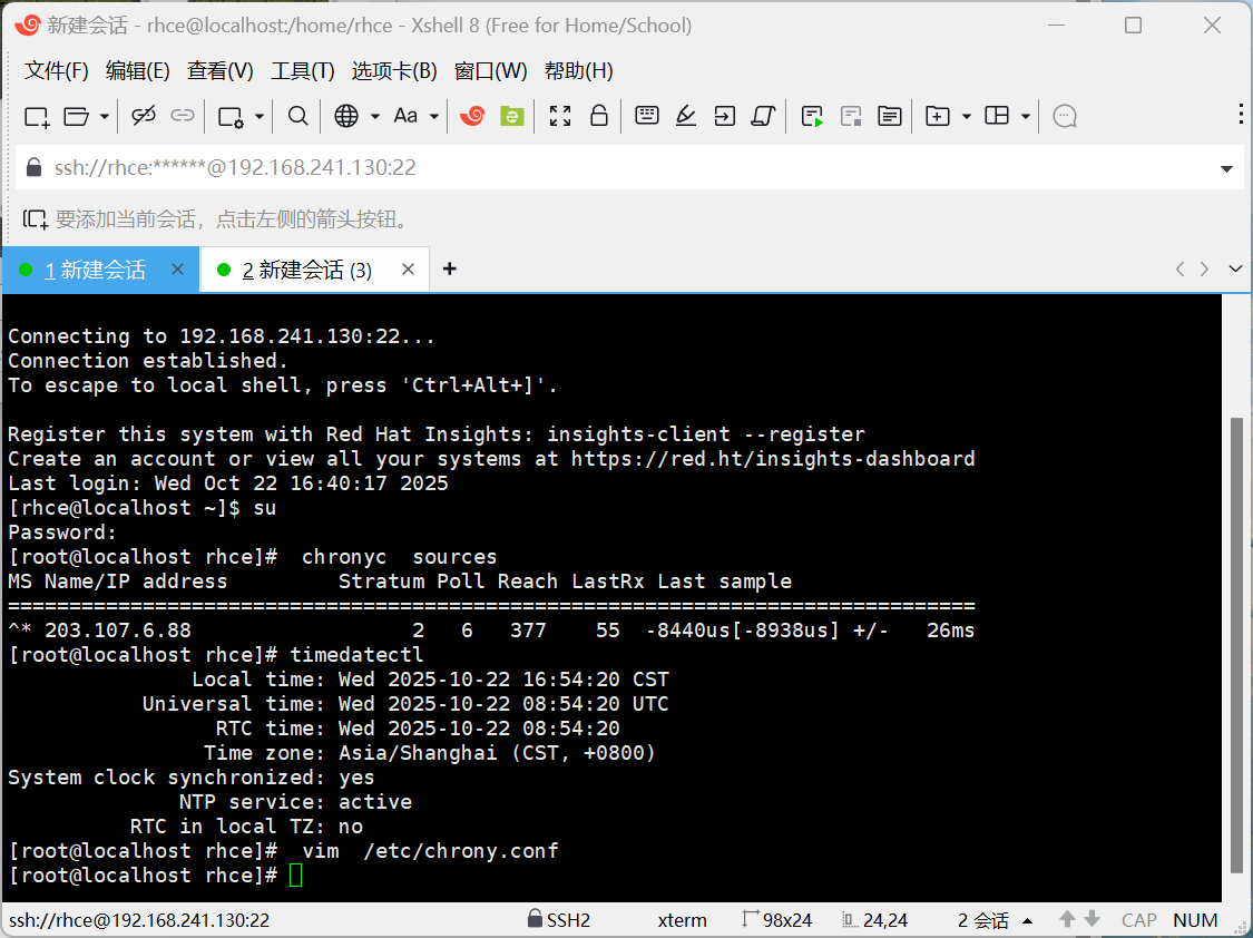 [root@localhost ~]# vim /etc/chrony.conf server 192.168.241.130 iburst