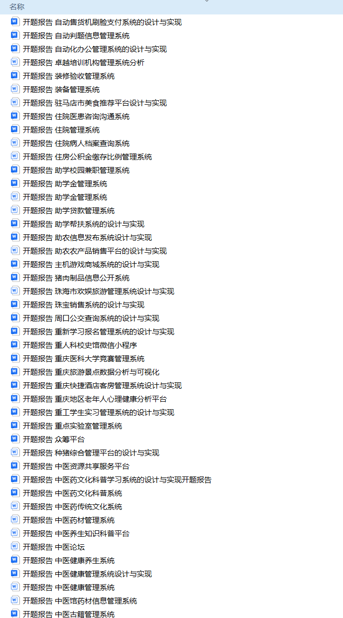 以上是H同学的毕业设计答辩过程,如果你现在还没有参加答辩,还是开题阶段,已经选好了题目不知道怎么写开题报告,可以下面找找有没有自己符合自己题目的开题报告内容,列表中的开题报告都是往届真实的开题报告可参考。