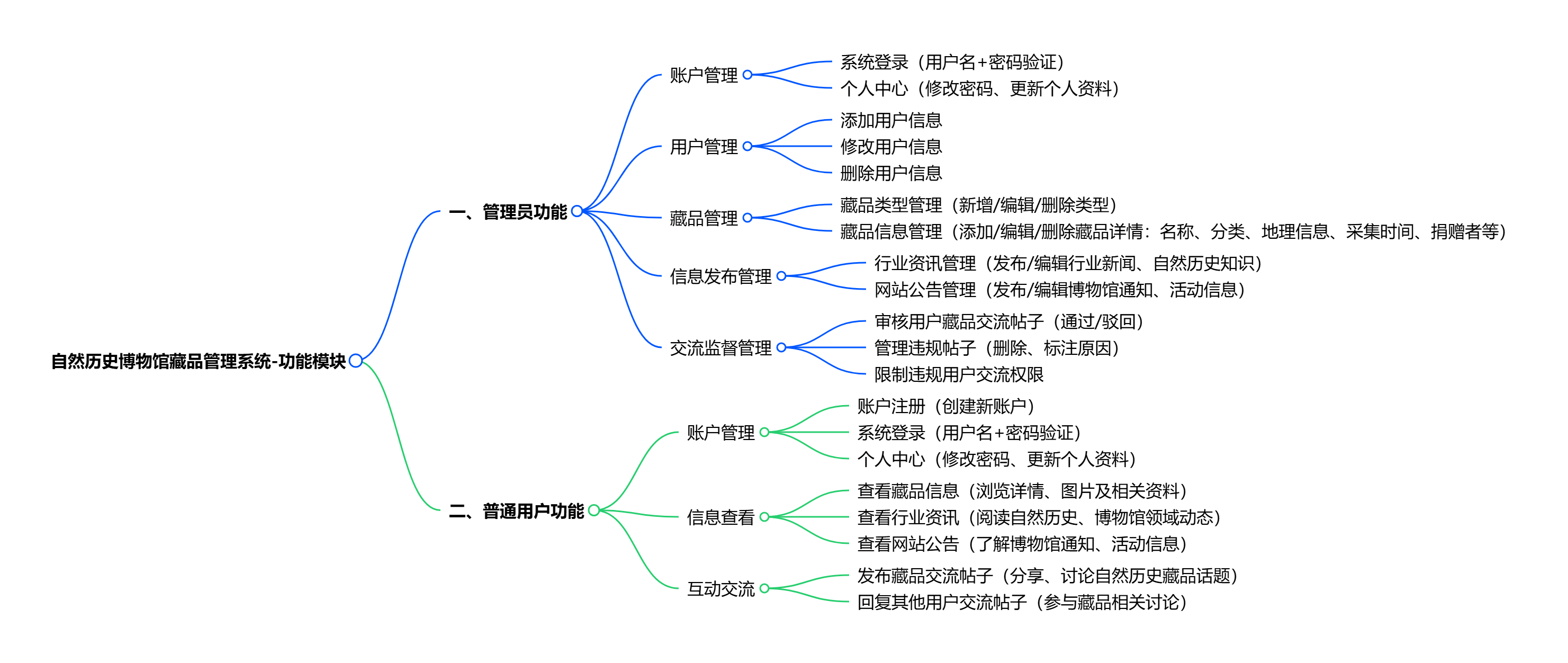 角色分为用户和管理员:用户可注册登录、浏览藏品、查看资讯、参与交流;管理员负责登录、用户管理、藏品类型及藏品信息管理、资讯与公告发布、交流审核等。后续将完成需求、设计、编码、测试与上线全流程。请各位老师批评指正。