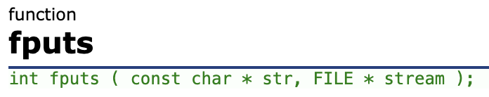 fputs | 文本行输出函数 | 所有输出流 |