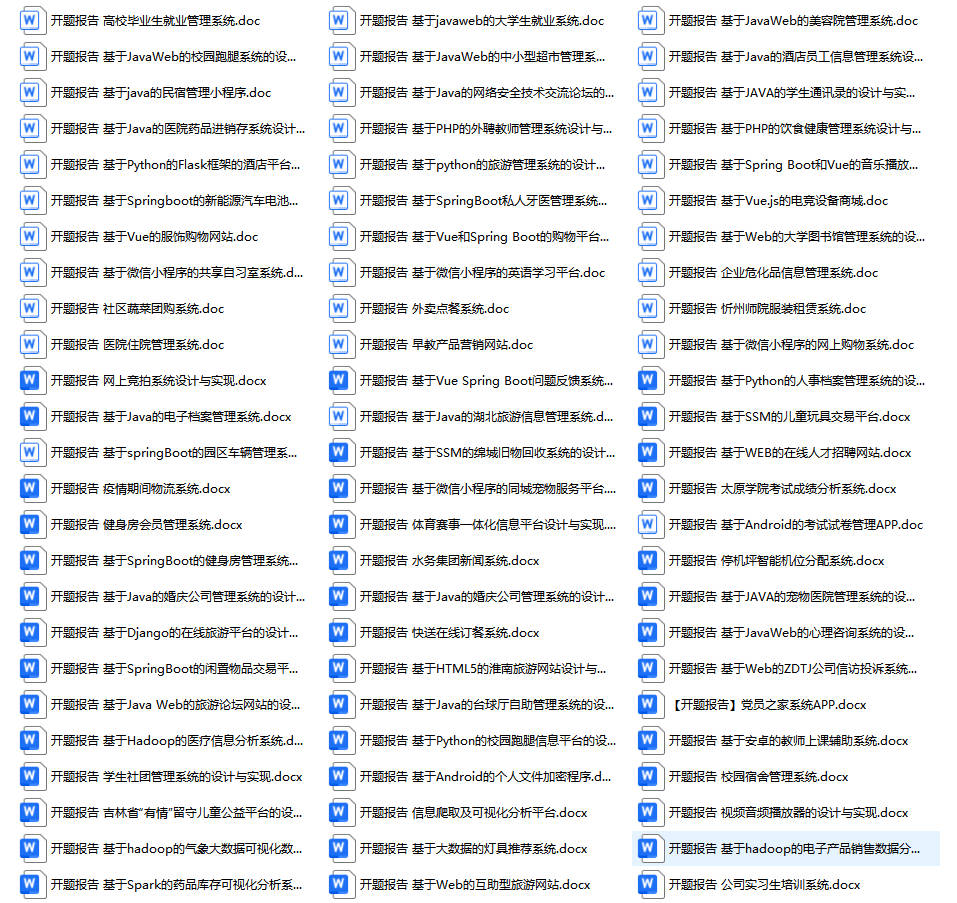 以上是某同学的毕业设计答辩的过程,如果你现在还没有参加答辩,还是开题阶段,已经选好了题目不知道怎么写开题报告,可以下面找找有没有自己符合自己题目的开题报告内容,列表中的开题报告都是往届真实的开题报告,可发送使用或参考。文末或底部来联xi可免费获取