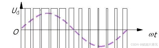 当不停的重复上述开关顺序时,可以观测到负载上的电压变化范围是在+Udc和-Udc之间交变切换的,就得到一个交变的波形。此时已经把直流电变成交流电了,只不过不是正弦波,下面就要把这个交变信号处理成近似正弦波。