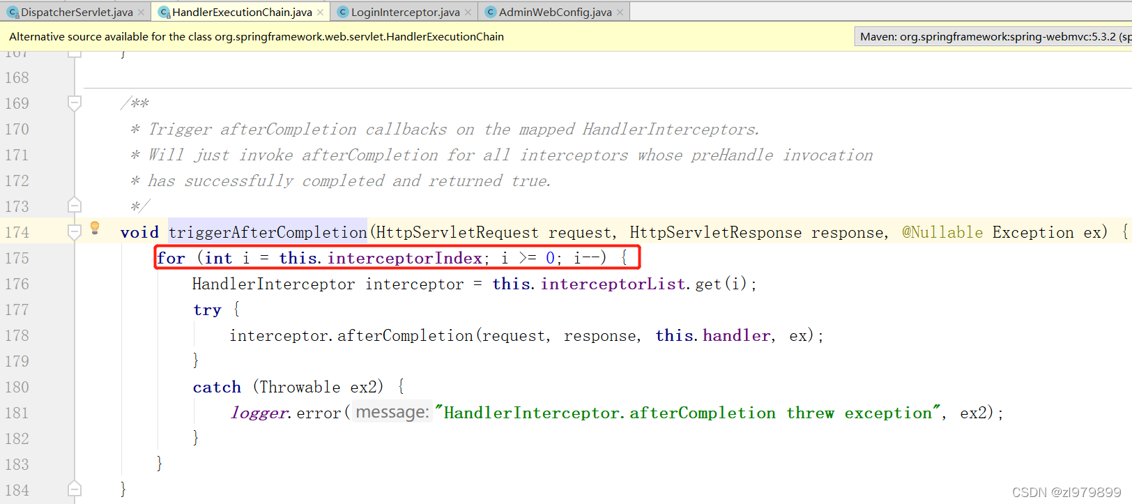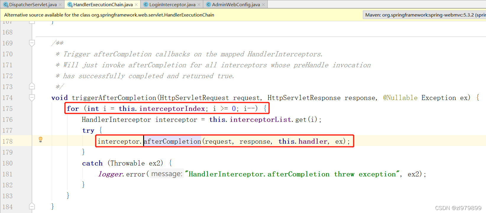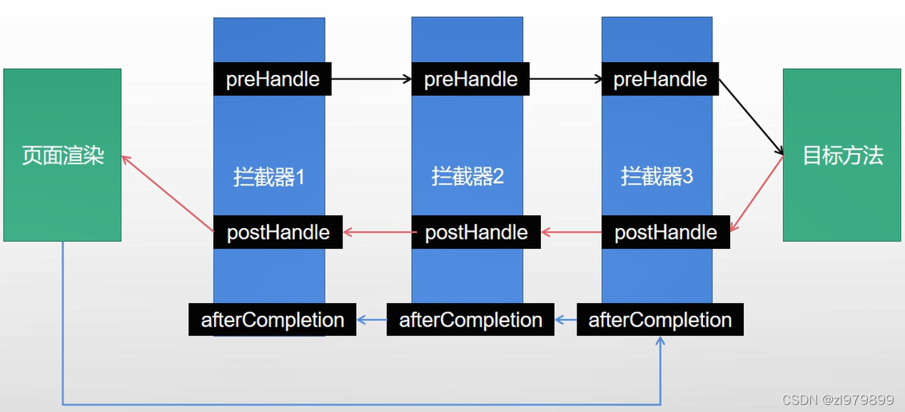 - 如果当前拦截器返回为false。直接 倒序执行所有已经执行了的拦截器的 afterCompletion