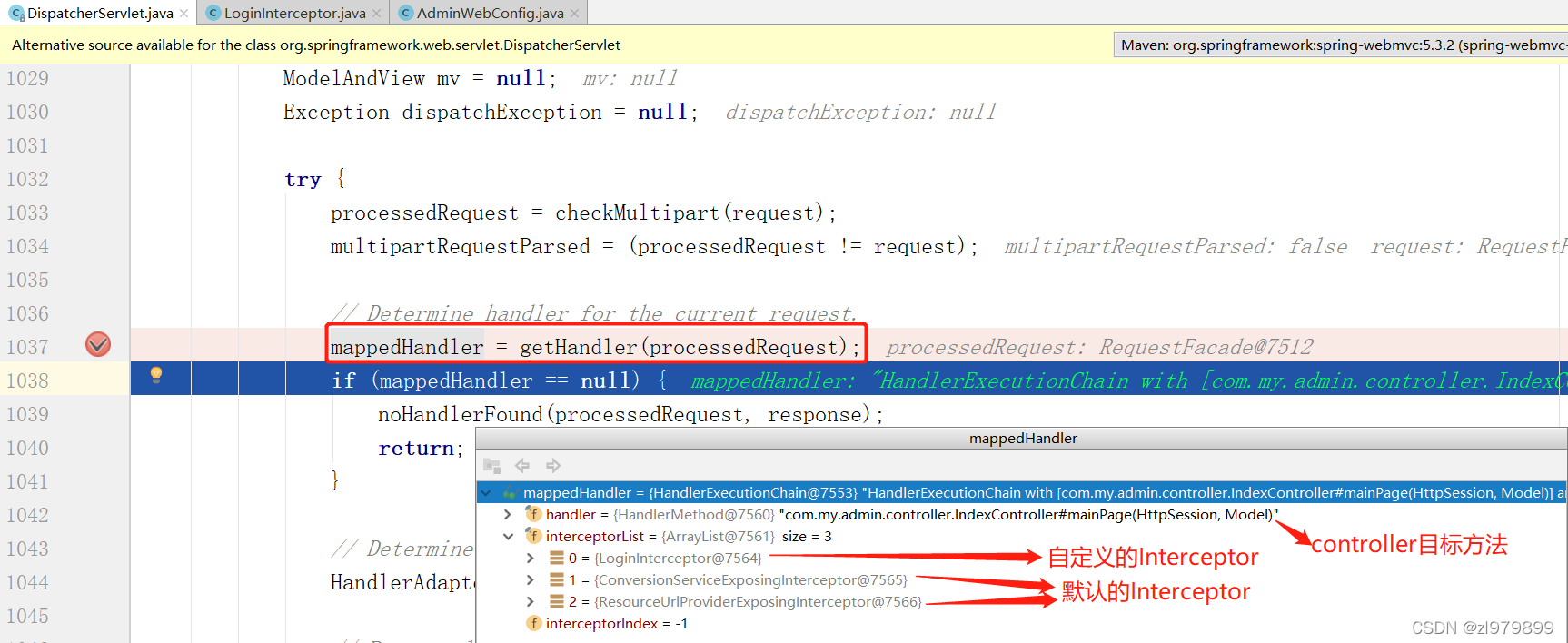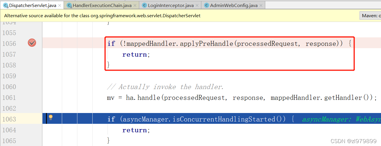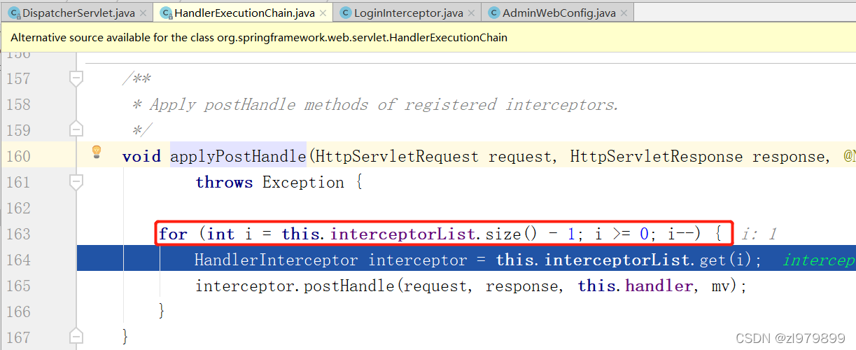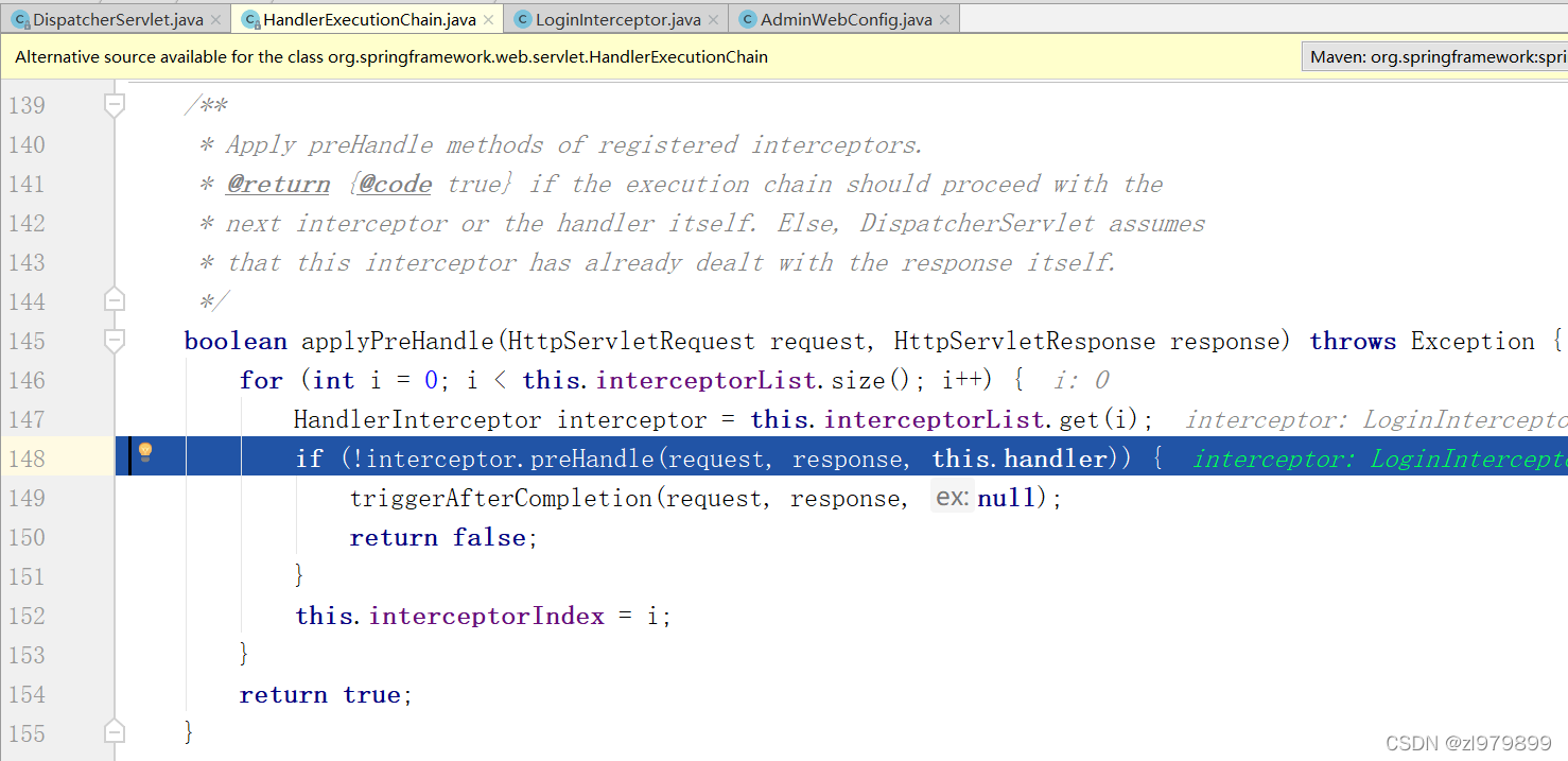 - 如果当前拦截器prehandler返回为true。则执行下一个拦截器的preHandle