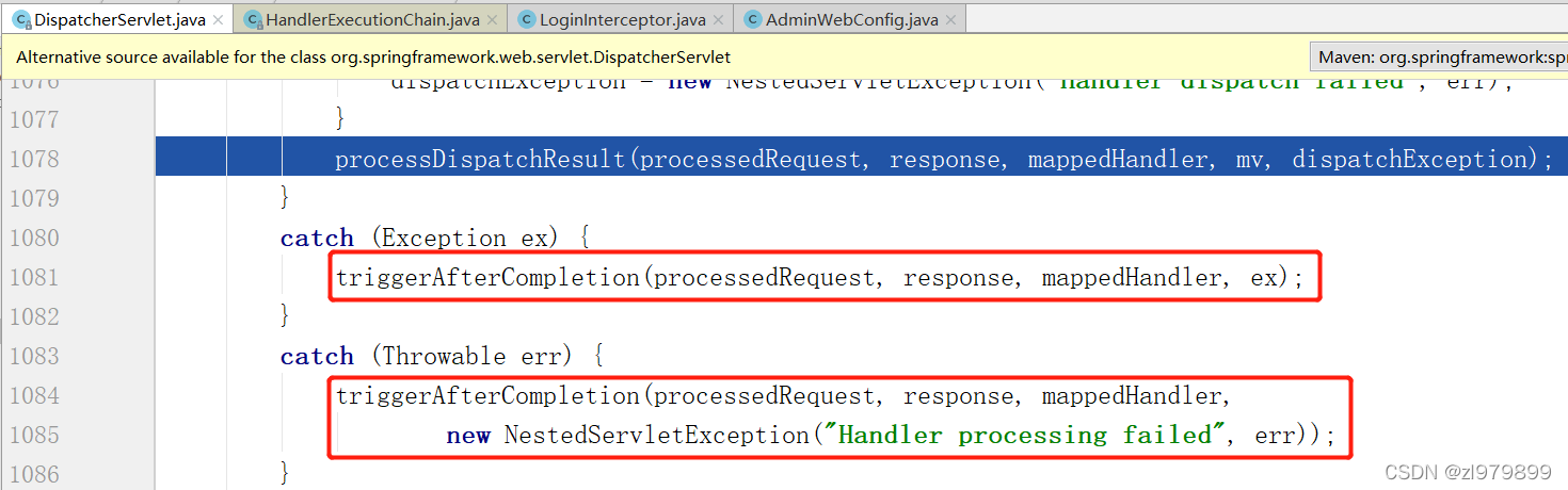 5. 前面的步骤有任何异常都会直接倒序触发 afterCompletion