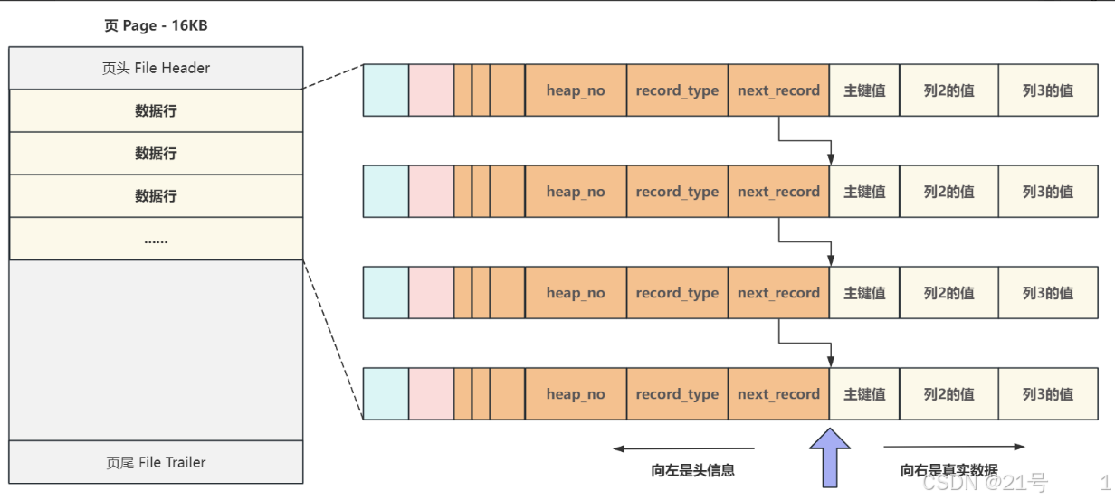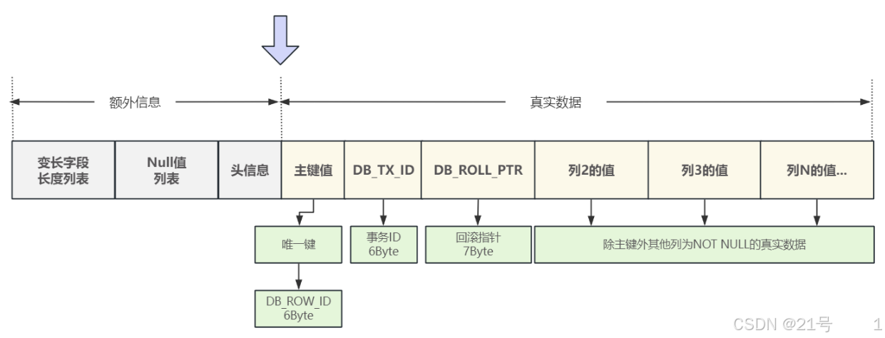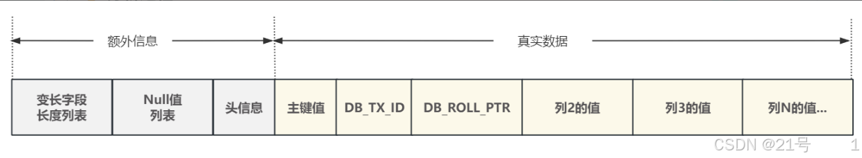 • 接下来就是除了主键和值为NULL的列之外,其他列的真实数据,按照顺序从左到右依次排列